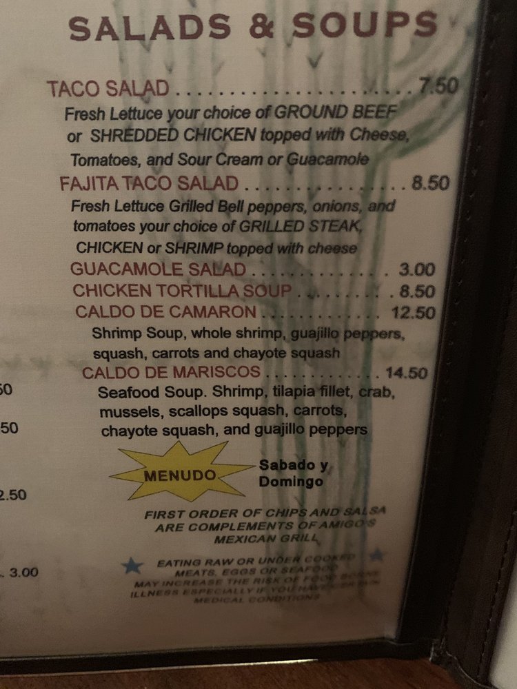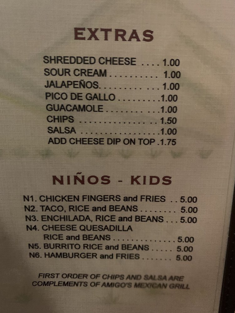 Amigo’s Mexican Grill Menu